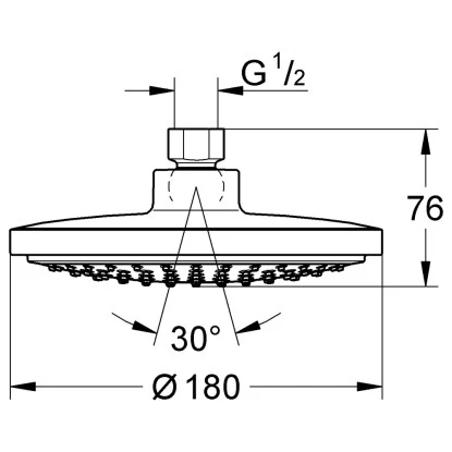 Die Euphoria Cosmopolitan 180 Kopfbrause passt mit seiner minimalistischen Optik perfekt in jedes urban eingerichtete Badezimmer. Sie hat einen Durchmesser von 310 mm und verfügt über ein Kugelgelenk mit einem Schwenkwinkel von 15°. Das Anschlussgewinde ist 1/2″ groß.