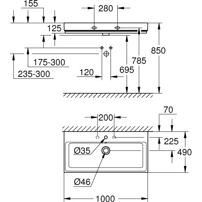 Die sanften Kanten formen einen zeitlosen Look, der zu nahezu jeder Ausstattung passt. Links und rechts der Armatur befindet sich ausreichend Platz, um beispielsweise Ihre Zahnbürste oder Dekorationen zu platzieren. Dank der kompakten Ausmaße mit 15,5 cm x 100 cm x 49 cm (H x B x T) eignet sich der Waschtisch auch ideal für Gäste-WCs, in denen es einen echten Hingucker darstellt.
