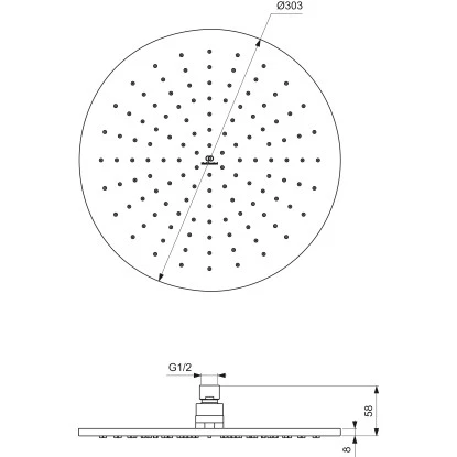 – Anschlussgewinde G1/2. Kopfbrause mit Kugelgelenk, 10 Grad schwenkbar.