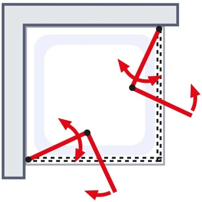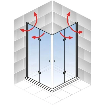 Das vordere Element der Drehfalttüren ist gegen das hintere einklappbar und die kompletten Türen lassen sich nach Innen und Außen drehen. So entsteht ein großzügiger Einstieg, wobei sich die Dusche jedoch platzsparend öffnen und schließen lässt – vor allem in kleinen Bädern ein großer Vorteil.